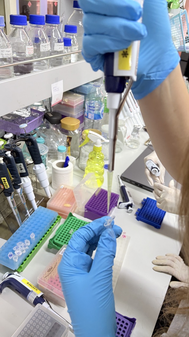 This research project focuses on producing puerarin, a natural compound known to reduce chemotherapy side effects, using Nicotiana benthamiana as a plant-based biofactory. I had the role of lab leader, led the experiment at Chulalongkorn University, where I used agroinfiltration to insert the target gene into the plant and express it successfully. I worked on every stage—from vector design and transformation to growth and compound validation—running multiple analyses such as gel electrophoresis and HPLCs to confirm synthesis. After 2 rounds of analysis tests, we were able to flag the success of our research.